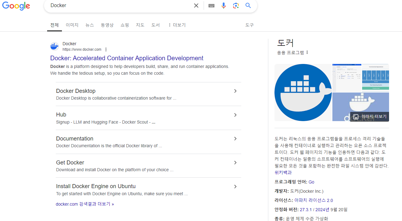 우선 처음 Docker를 접한다고 생각하고 Docker를 구글에 검색해봅니다. 그러면, 가장 처음 등장하는 '위키백과'의 설명을 보면 Docker에 대해 다음과 같이 써있습니다.