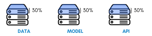 그래서 이제부터 한 가지 상황을 가정해 Docker에 대해 알아보고자 한다. 이제부터 우리는 개인 프로젝트를 진행하면서 기깔나는 AI모델을 만들었고 서비스를 만들고 싶다. 그러기 위해서는 '서빙'을 해야 하는데, '서빙'을 위해서는 '서버'를 구축해야 한다. 그리고 우리는 다음과 같이 Data, Model, API와 관련된 서버를 구성해야 한다고 판단을 했다.